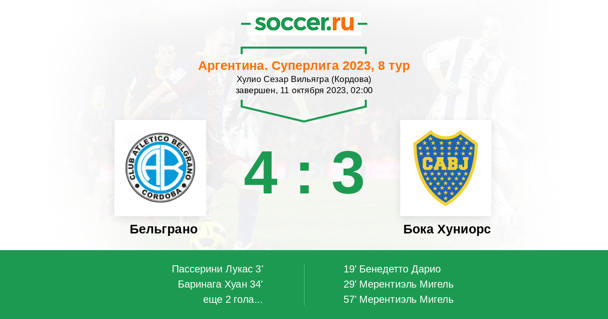 | Бельграно | 26:44 | 14:21 | 12:23 |