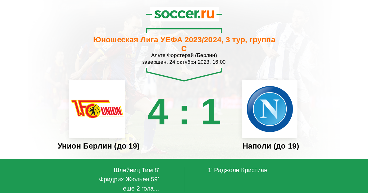 | Унион Берлин (до 19) | Наполи (до 19) | |