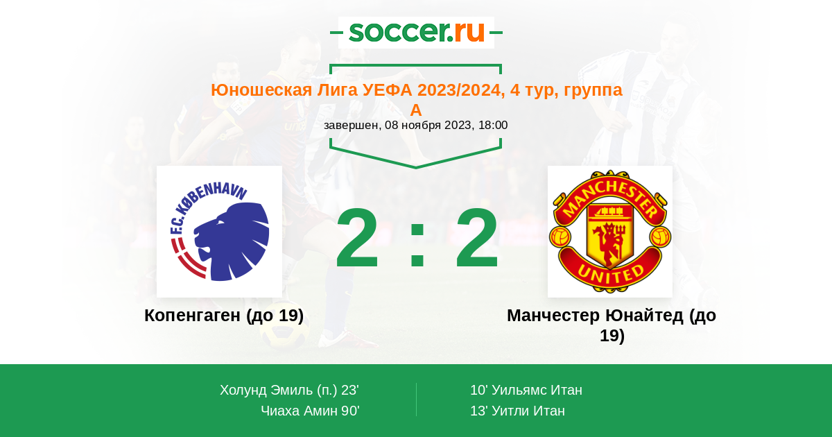 | Копенгаген (до 19) | Манчестер Юнайтед (до 19) | |