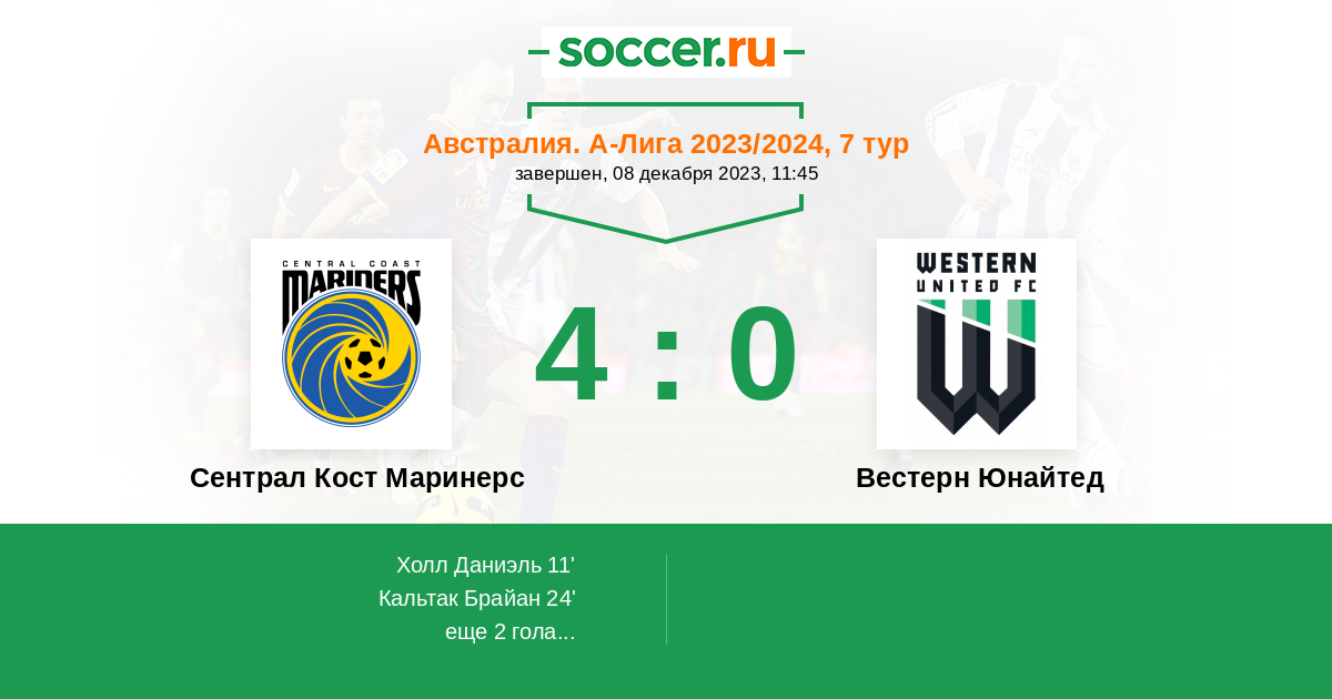 | Сентрал Кост Маринерс | Вестерн Юнайтед | |