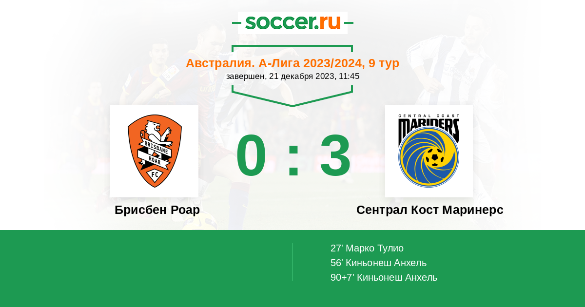 | Брисбен Роар | Сентрал Кост Маринерс | |