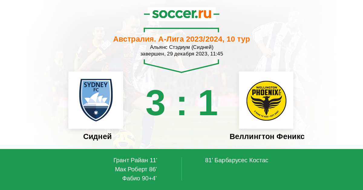 | Сидней | Веллингтон Феникс | |