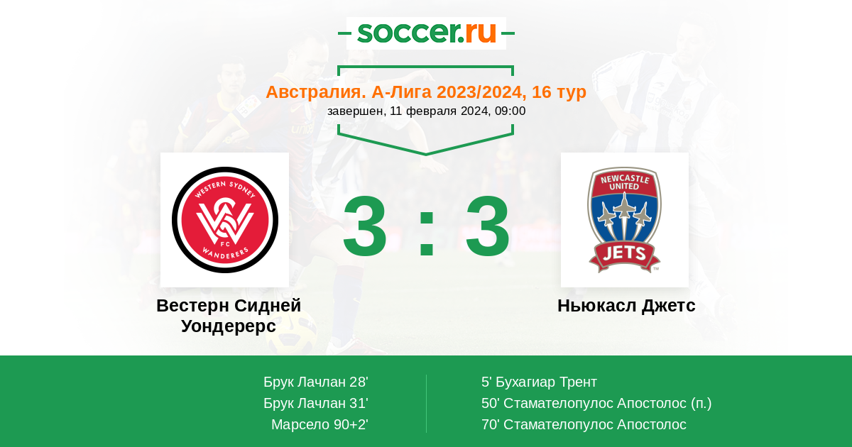| Ньюкасл Джетс | 51:50 | 23:22 | 28:28 |