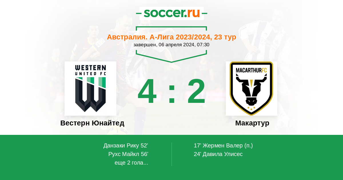| Вестерн Юнайтед | 18:16 | 8:4 | 10:12 |