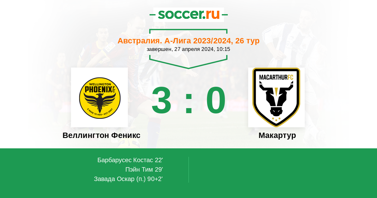 | Веллингтон Феникс | Макартур | |