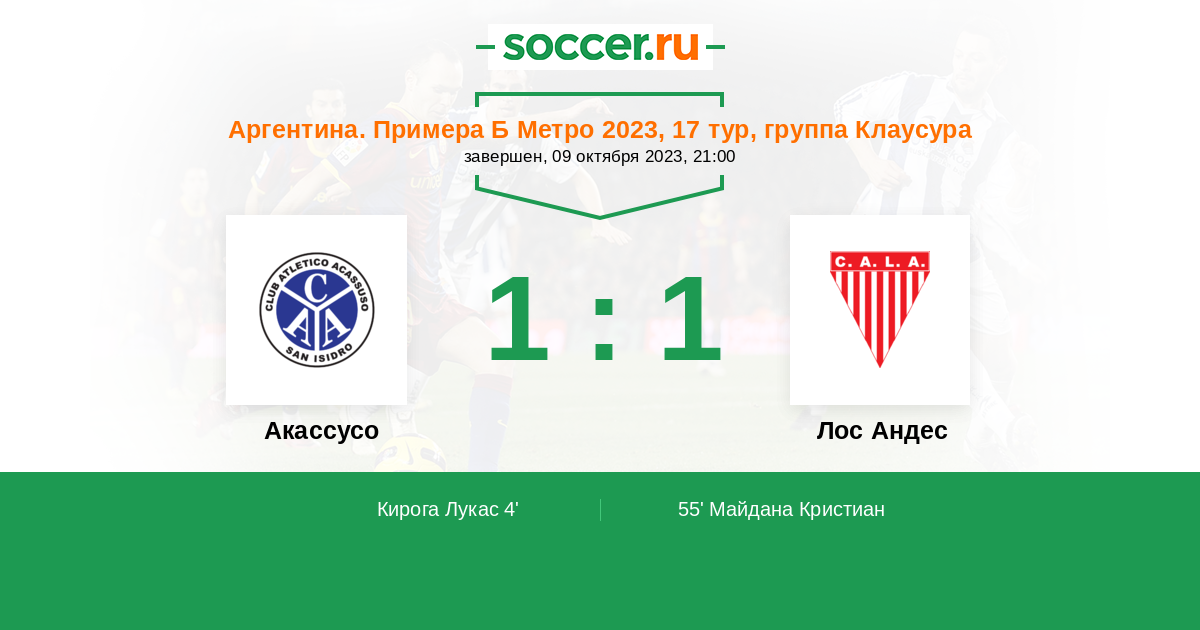 | Акассусо | 29:21 | 16:8 | 13:13 |