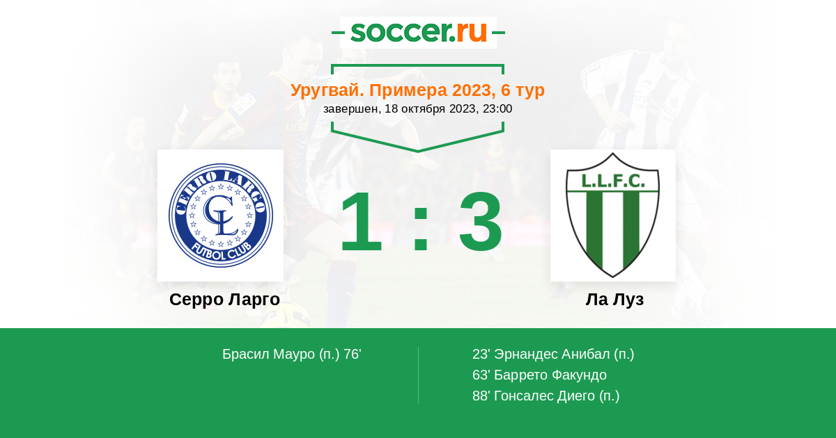 | Серро Ларго | 3:0 | 0:0 | 3:0 |