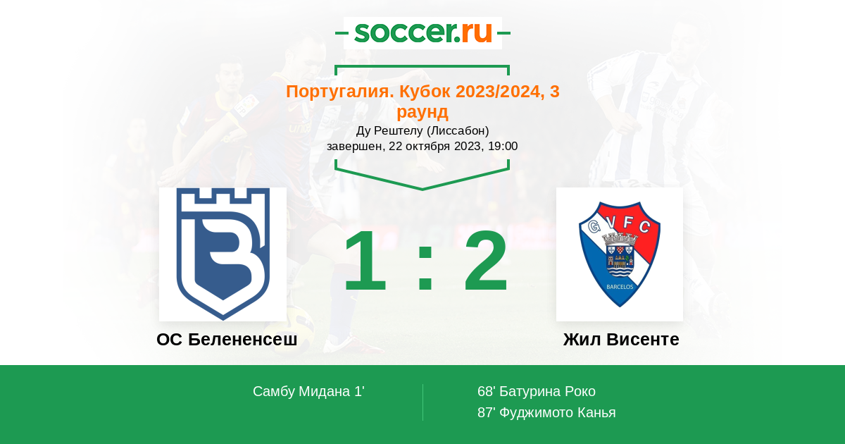 | Жил Висенте | 2:0 | 0:0 | 2:0 |