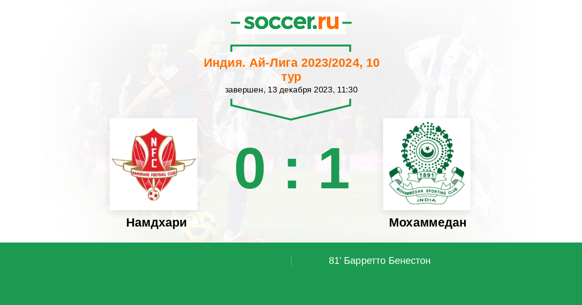| Намдхари | 1:3 | 0:0 | 1:3 |