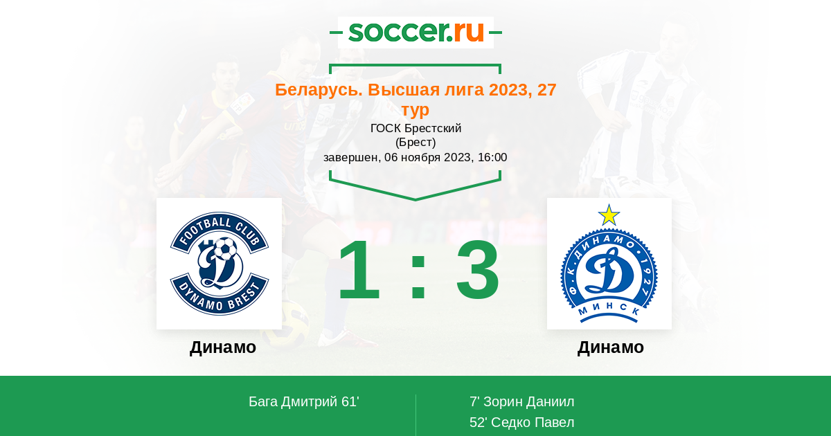 | Динамо | 64:98 | 30:39 | 34:59 |