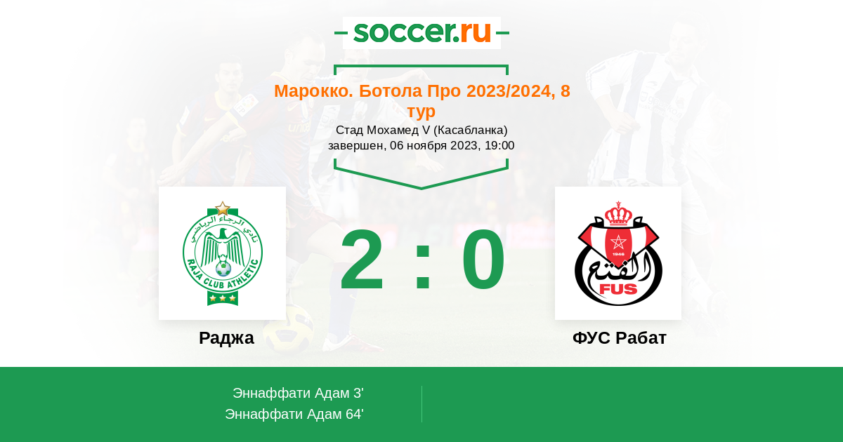 | Раджа | ФУС Рабат | |