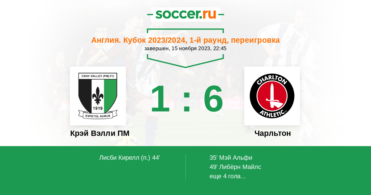 | Крэй Вэлли ПМ | 1:1 | 0:0 | 1:1 |
