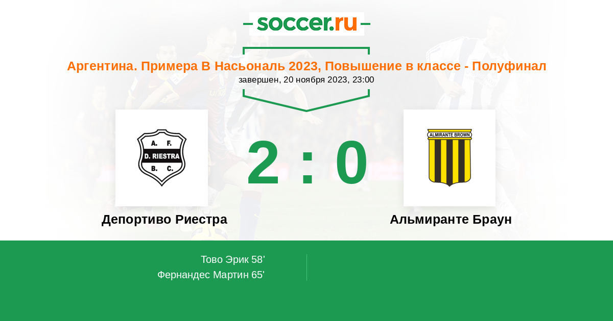 | Депортиво Риестра | Альмиранте Браун | |