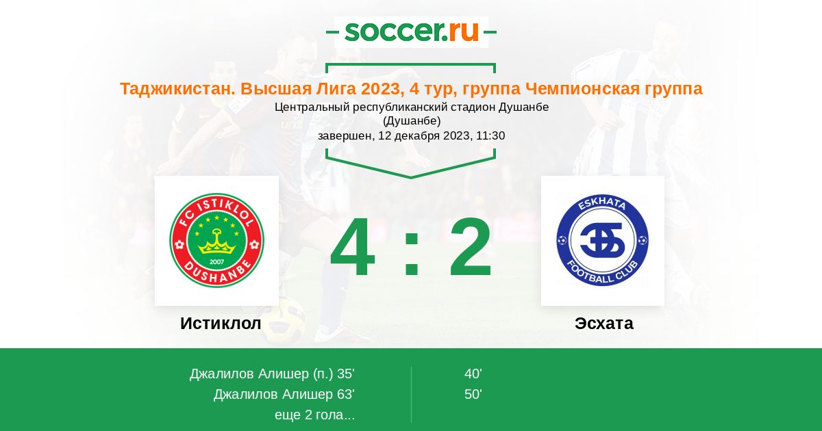 | Истиклол | 37:6 | 24:4 | 13:2 |
