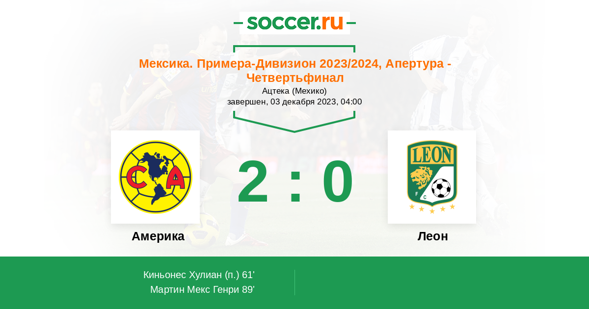 Леон 3:0 Америка