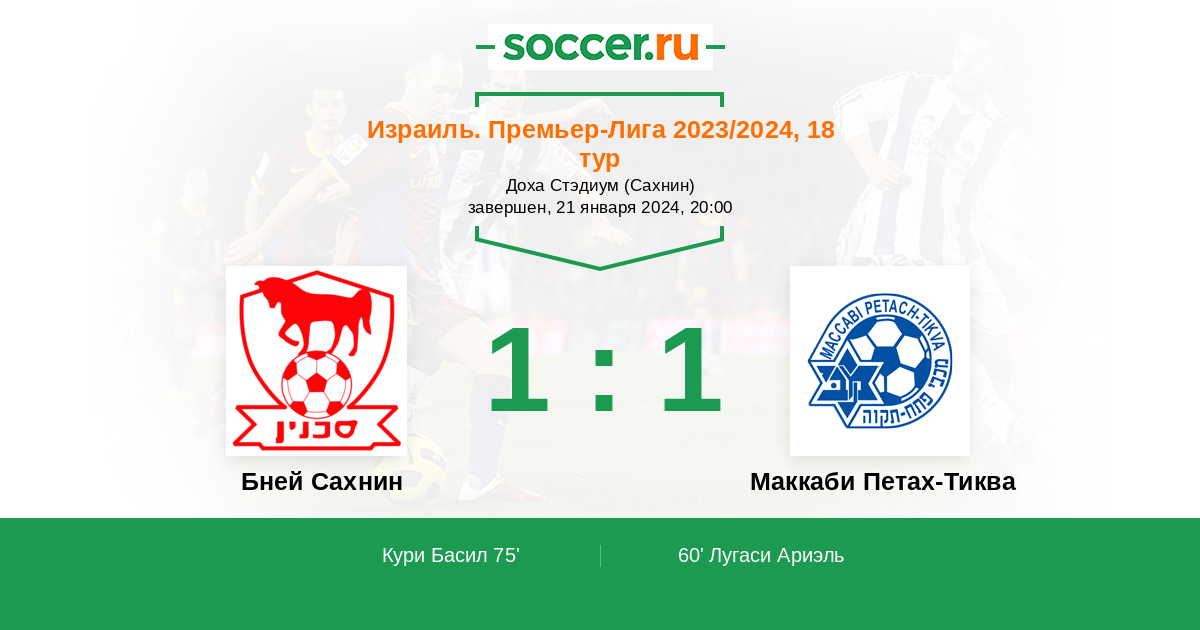 | Бней Сахнин | Маккаби Петах-Тиква | |