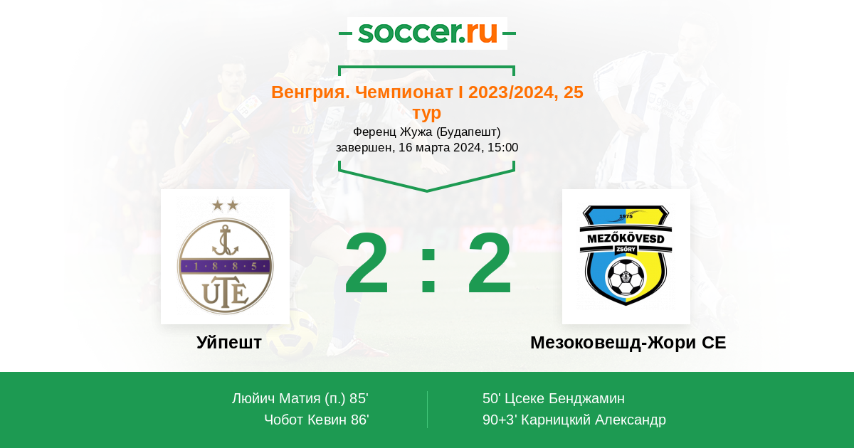 | Уйпешт | Мезоковешд-Жори СЕ | |