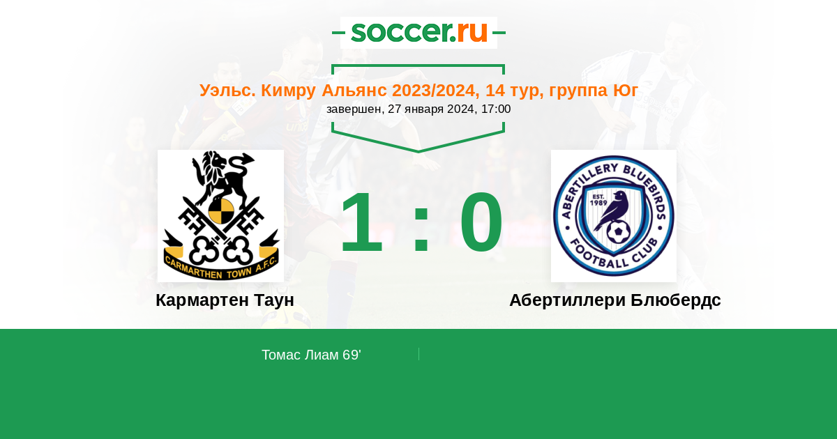 | Кармартен Таун | Абертиллери Блюбердс | |