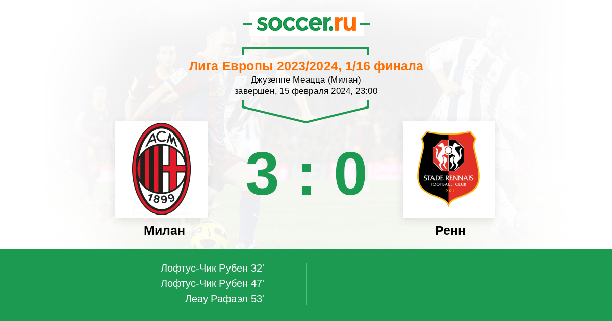 | Милан | Ренн | |