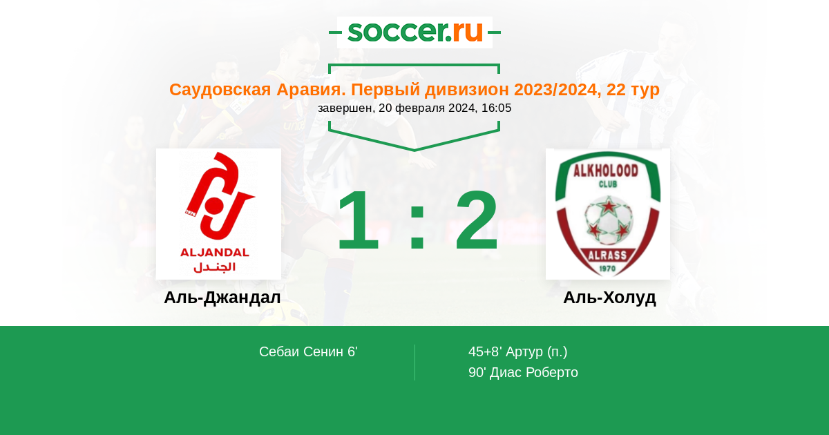| Аль-Холуд | 1:0 | 1:0 | 0:0 |
