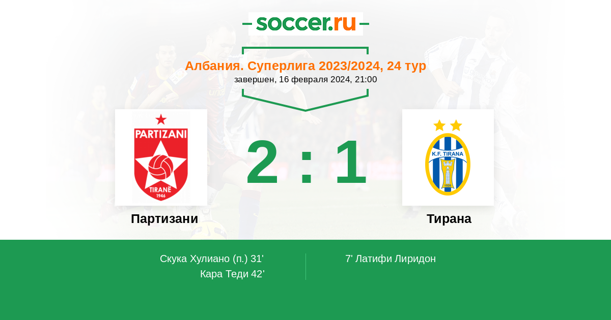 | Албания. Суперлига | 74 | 24 | 24 | 26 |