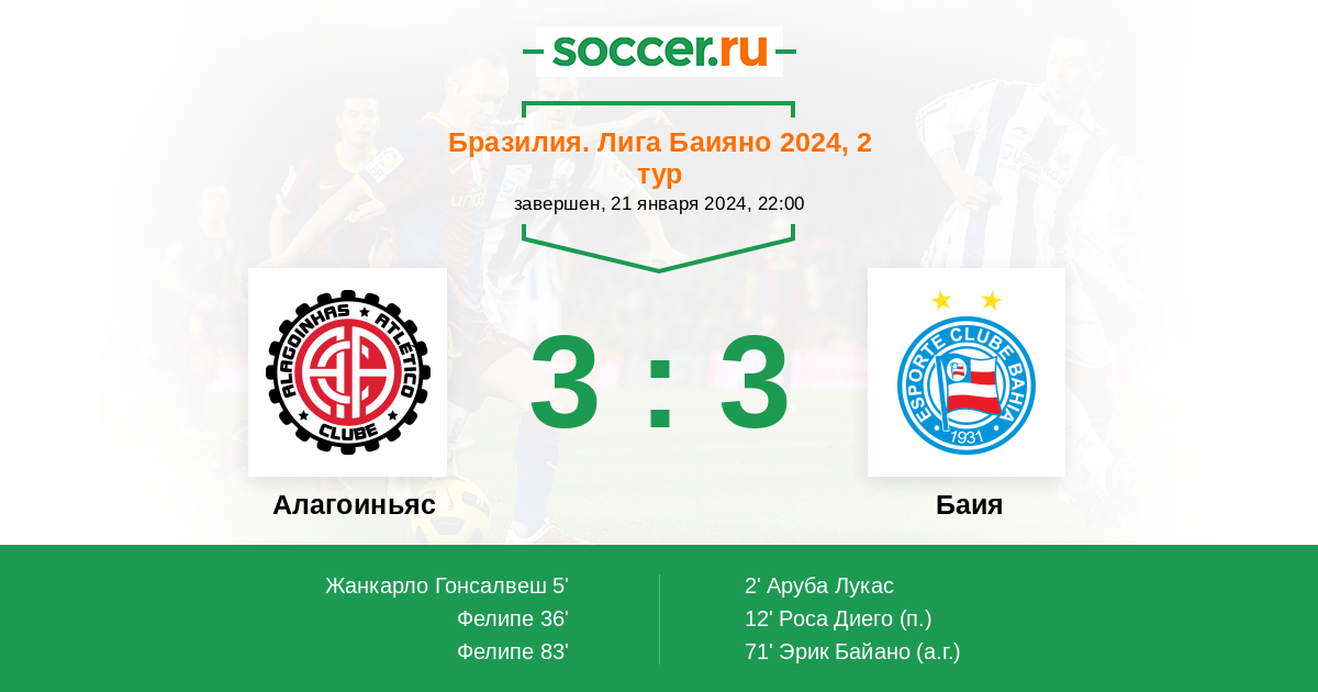 | Бразилия. Лига Баияно | 28 | 4 | 17 | 7 |