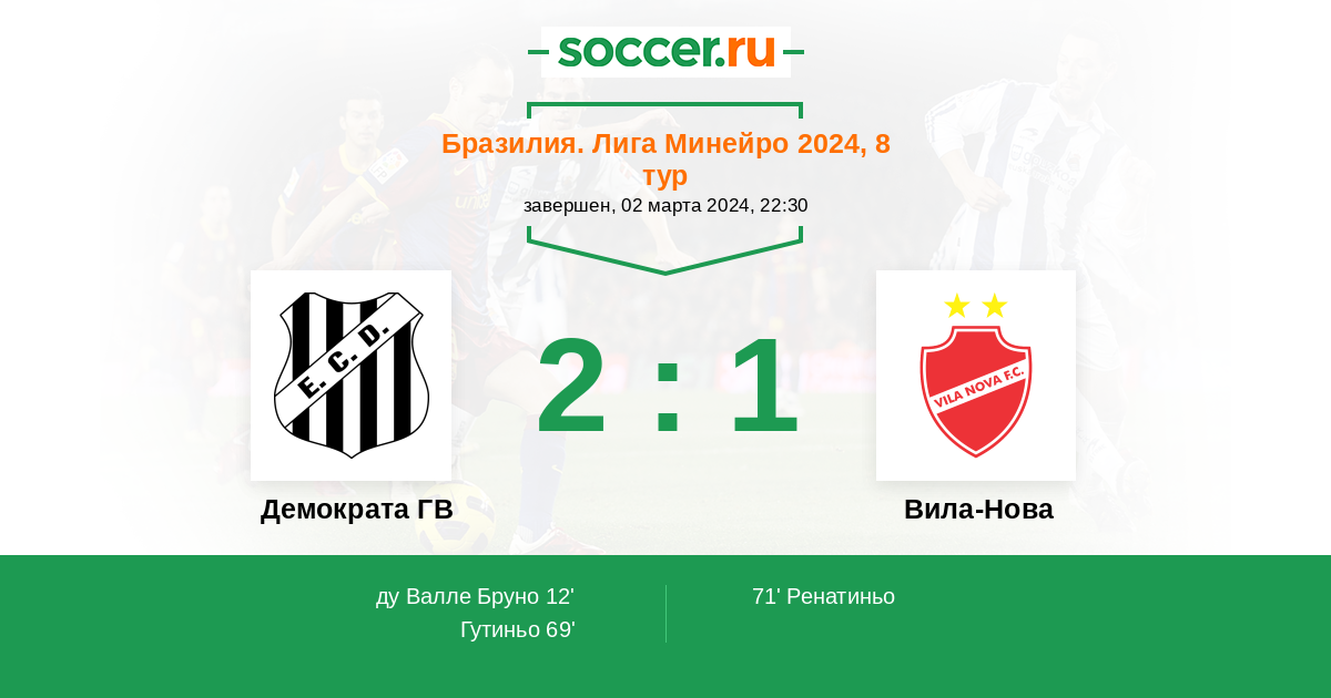 | Бразилия. Лига Минейро | 18 | 8 | 6 | 4 |