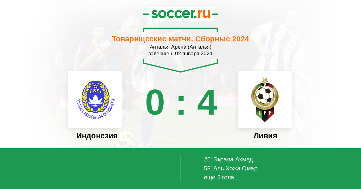 | Ливия | 2:1 | 0:0 | 2:1 |