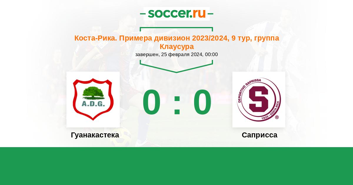 | Коста-Рика. Примера дивизион | 14 | 3 | 9 | 2 |