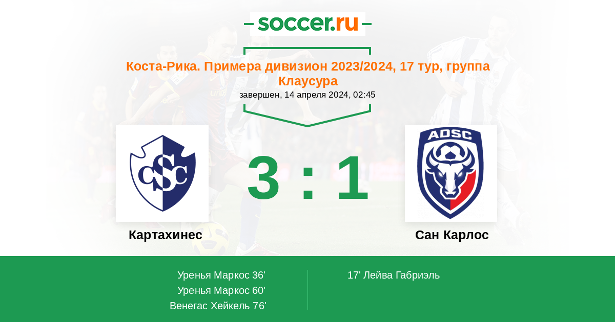 | Сан Карлос | 53:82 | 28:37 | 25:45 |