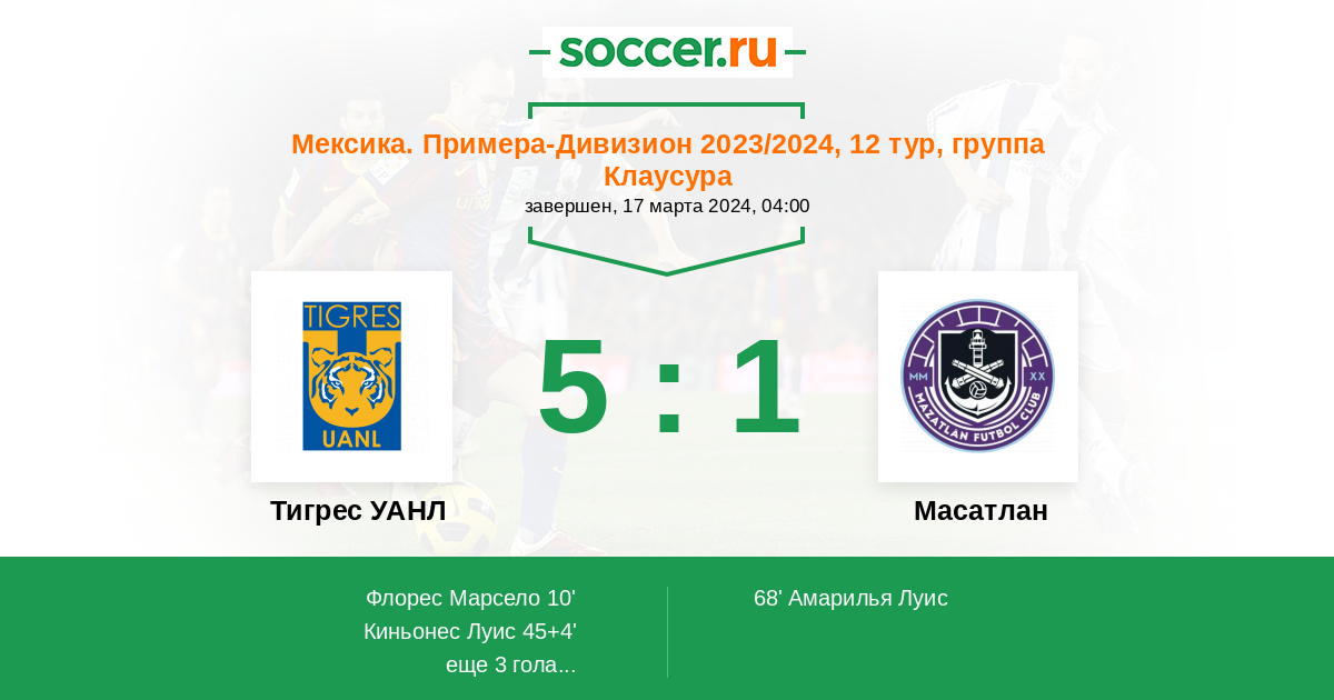 | Тигрес УАНЛ | Масатлан | |