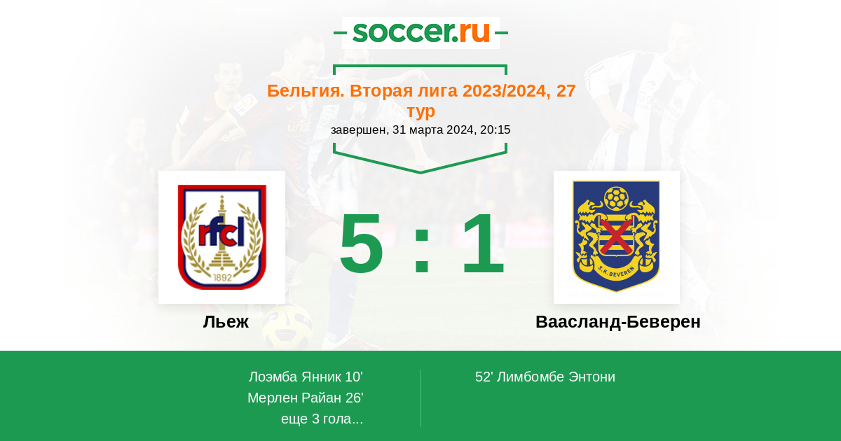 | Льеж | Ваасланд-Беверен | |
