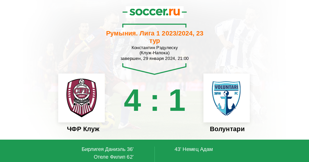 | ЧФР Клуж | 49:9 | 29:2 | 20:7 |