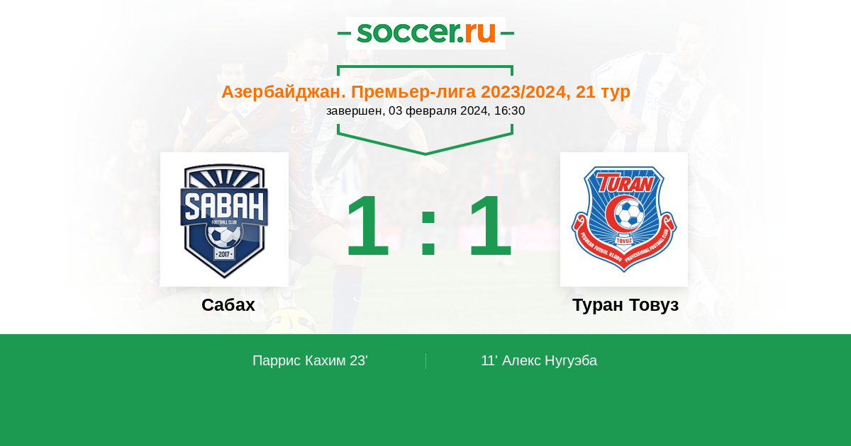 | Сабах | Туран Товуз | |