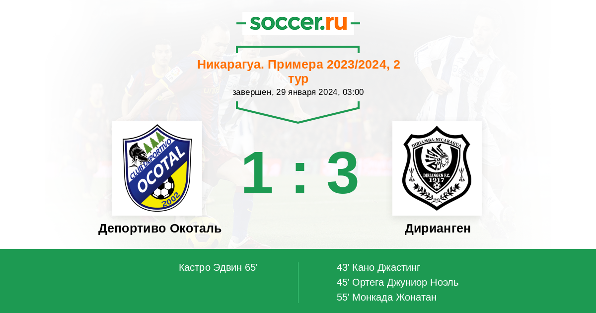 | Депортиво Окоталь | 67:128 | 39:44 | 28:84 |