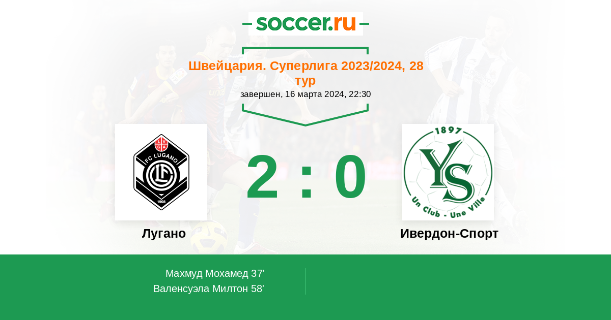 | Ивердон-Спорт | 3:15 | 2:7 | 1:8 |