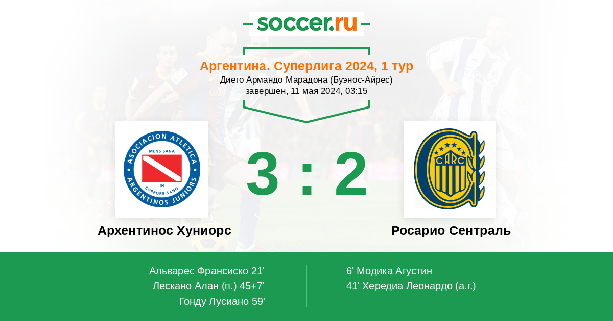 | Росарио Сентраль | 37:34 | 25:16 | 12:18 |