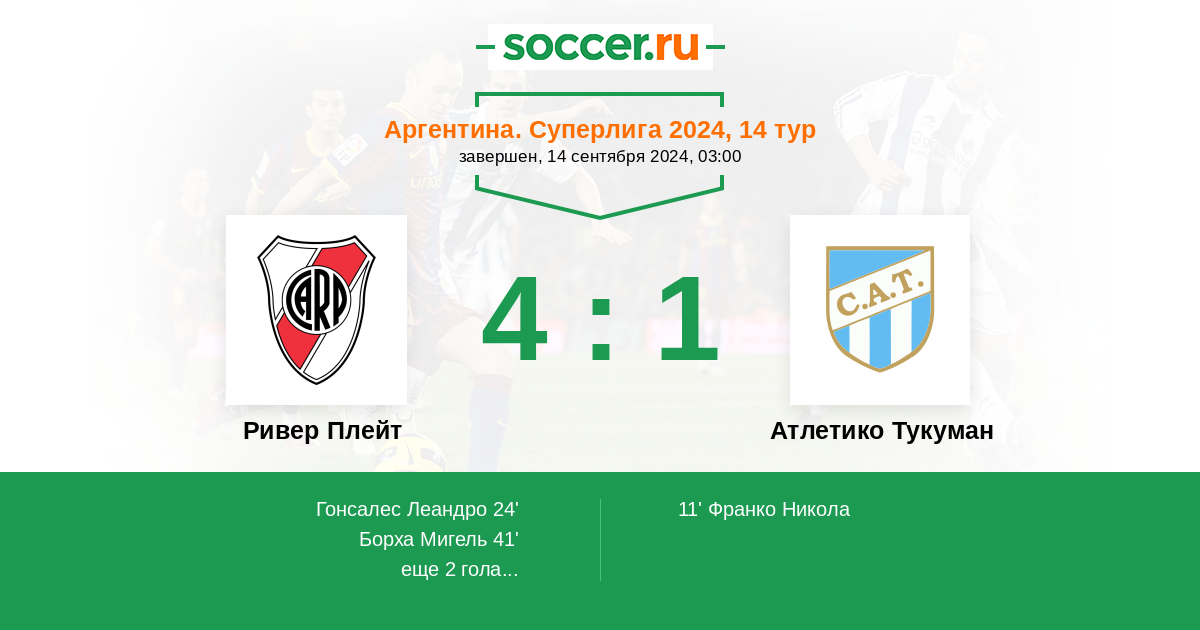 | Атлетико Тукуман | 9:14 | 6:9 | 3:5 |