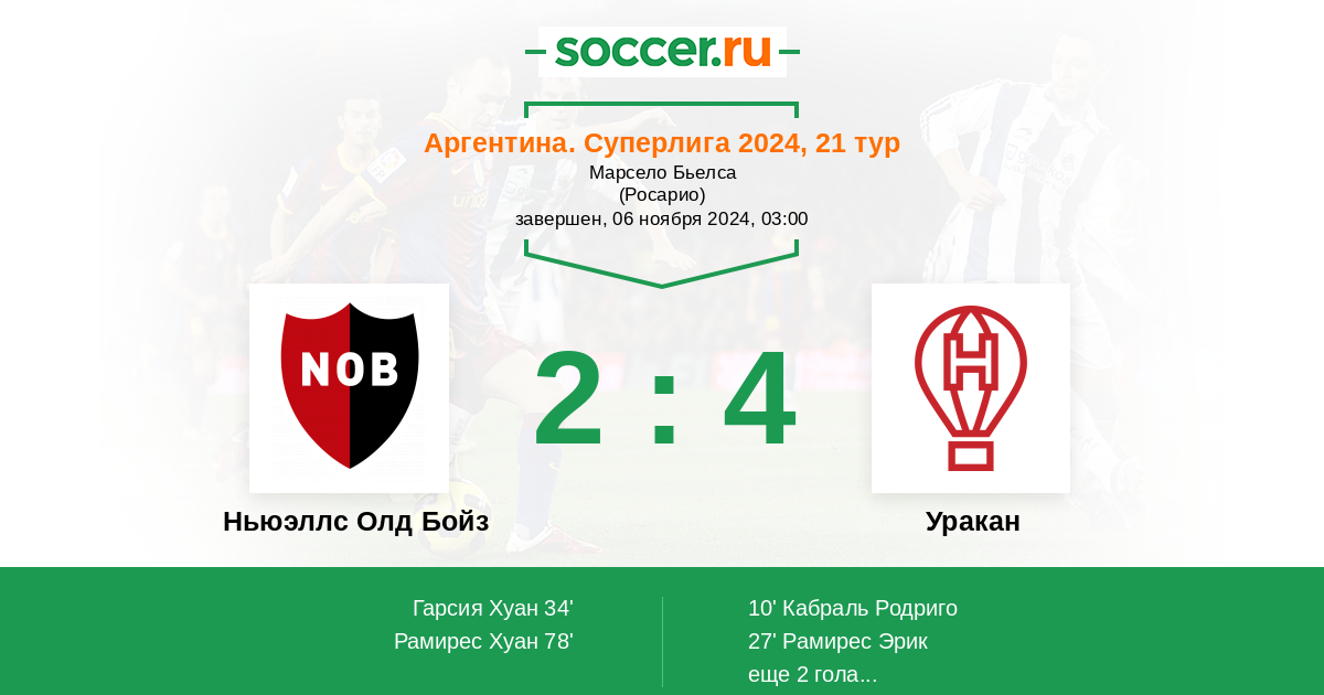 | Ньюэллс Олд Бойз | 40:26 | 29:13 | 11:13 |