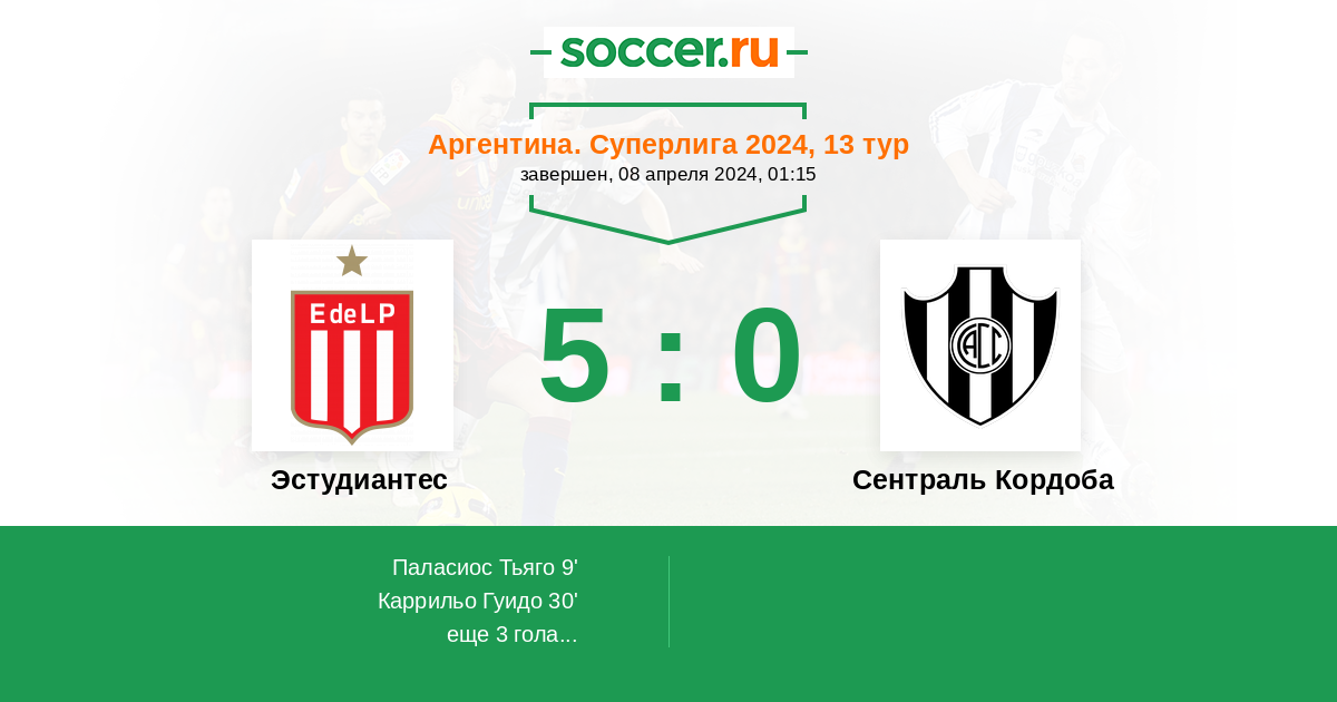 | Эстудиантес | 19:13 | 12:7 | 7:6 |