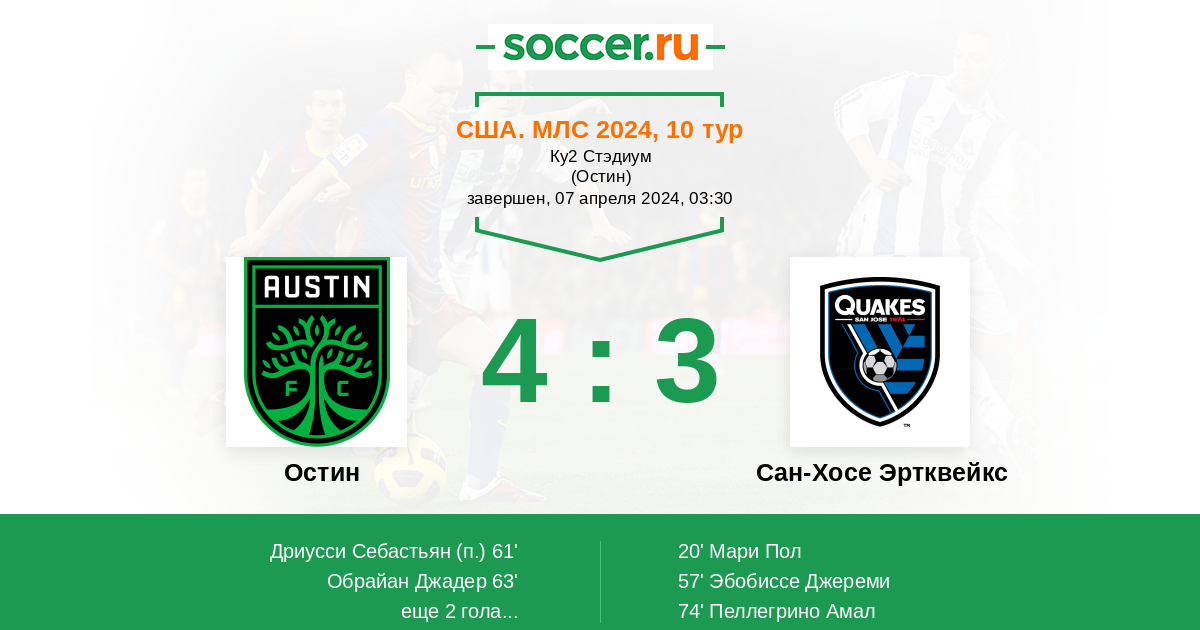 | Остин | Сан-Хосе Эртквейкс | |