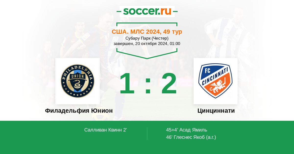 Филадельфия Юнион - Цинциннати ! Матчи с участием этих команд проходят довольно результативно . Да и очные встречи бывают весьма голевыми . Надеюсь сегодня команды не подведут и нужные голы забьют .