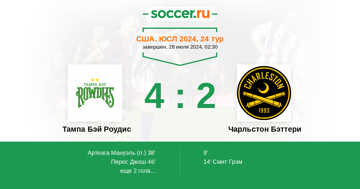 | Чарльстон Бэттери | 33:29 | 19:12 | 14:17 |