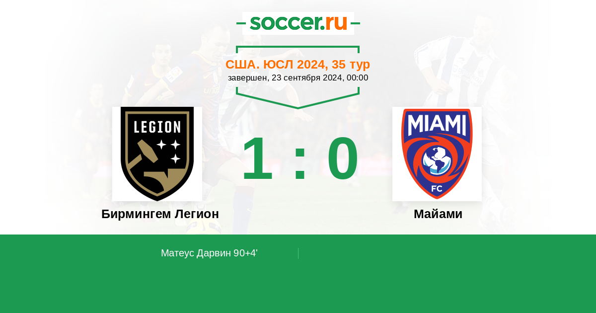 | Бирмингем Легион | Майами | |