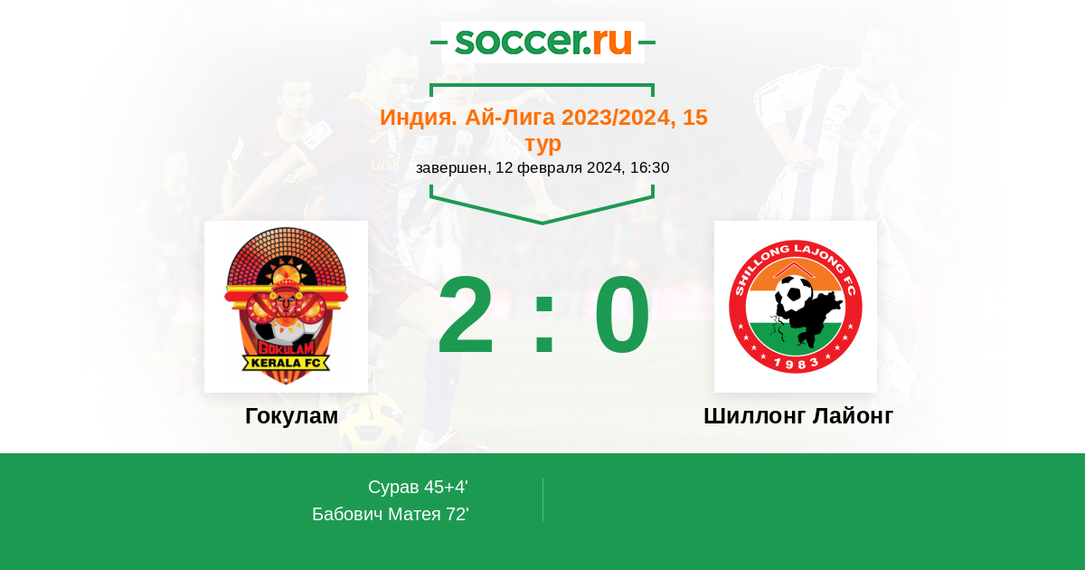 | Шиллонг Лайонг | 12:11 | 5:2 | 7:9 |
