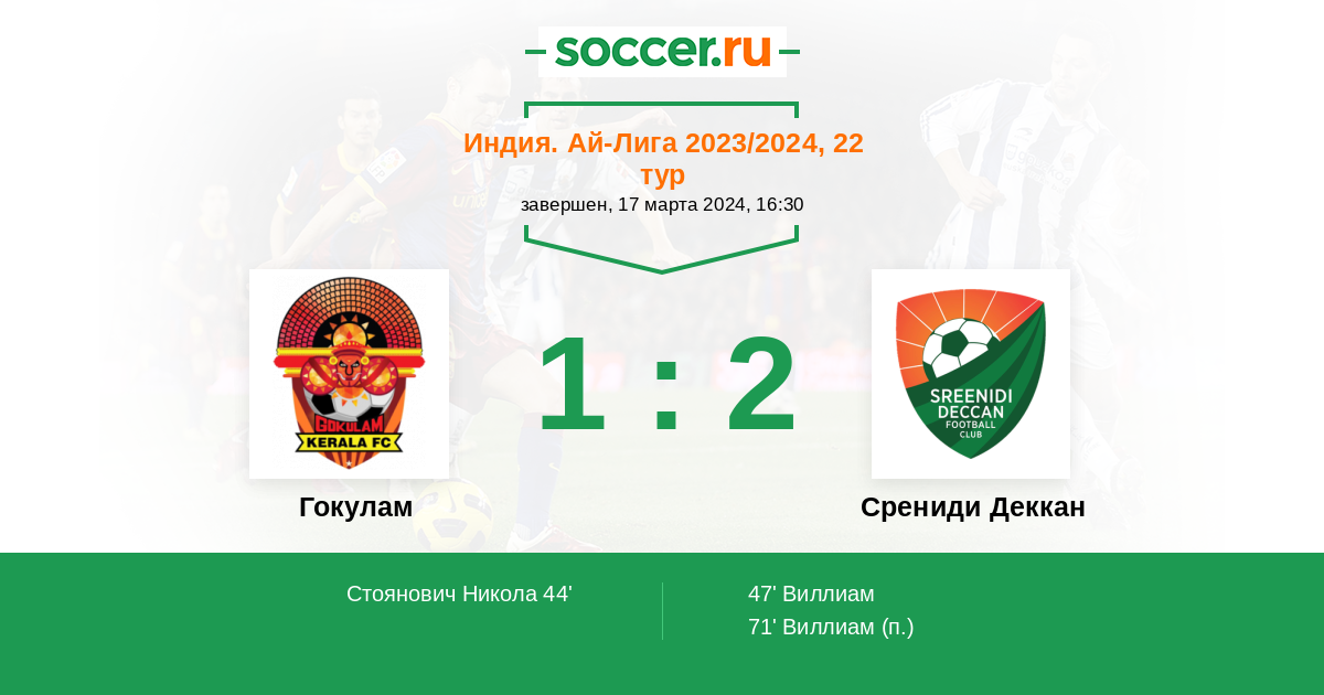 | Гокулам | 12:8 | 3:3 | 9:5 |