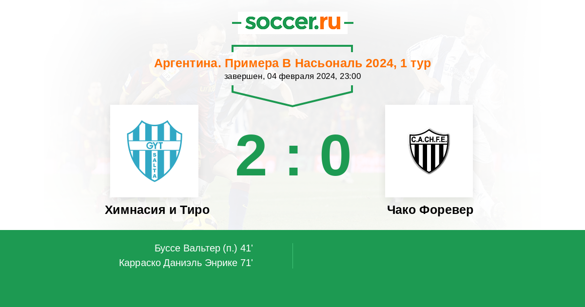 | Чако Форевер | 0:1 | 0:1 | 0:0 |