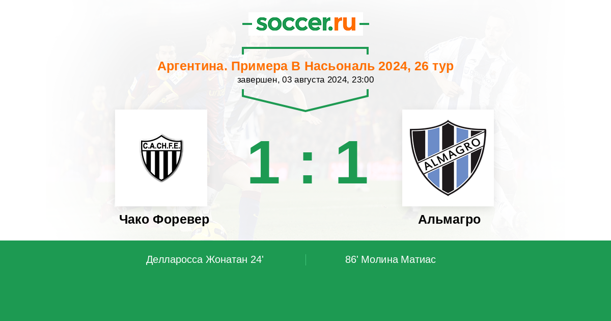 | Чако Форевер | 0:1 | 0:1 | 0:0 |