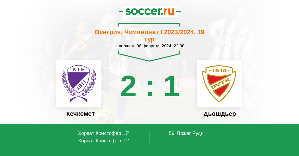 | Кечкемет | 2:6 | 0:0 | 2:6 |