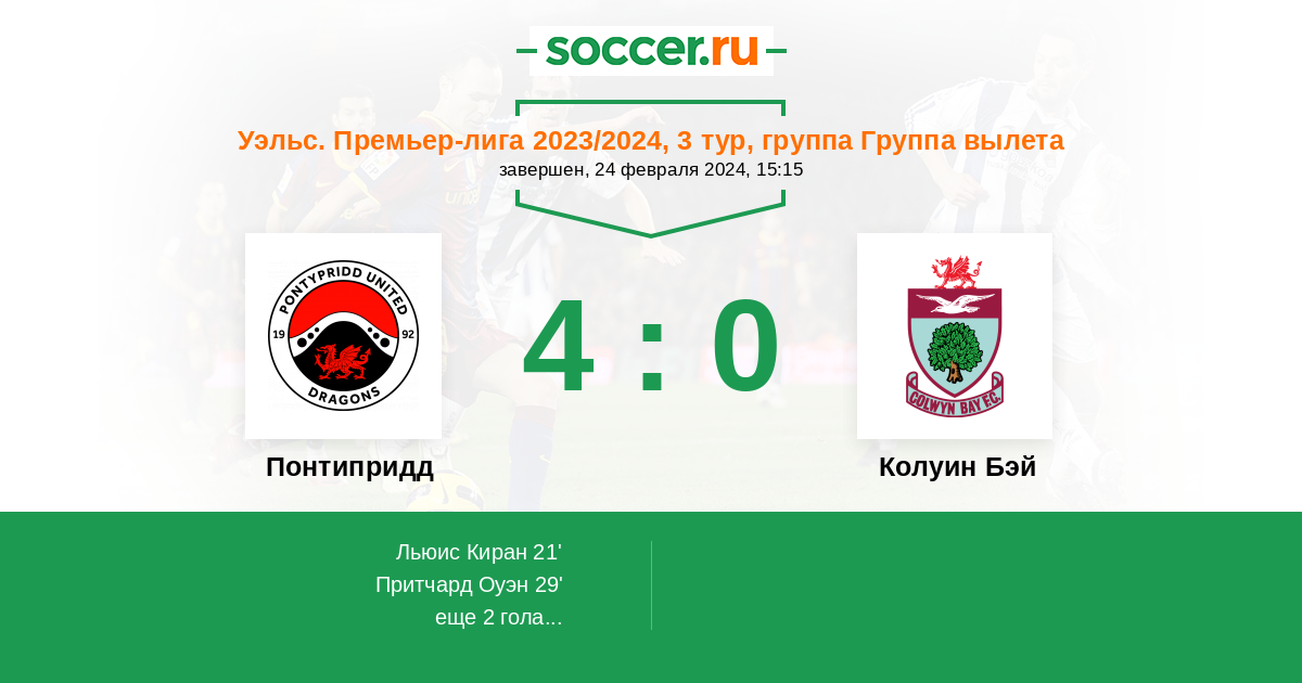 | Понтипридд | 3:6 | 0:3 | 3:3 |